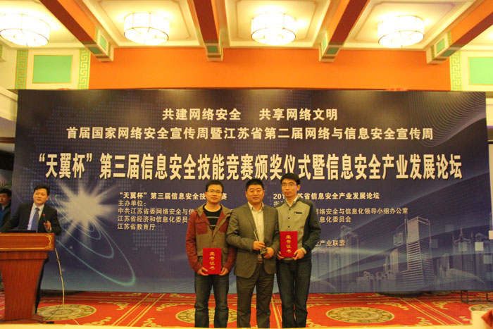 11月28日,江蘇省第三屆信息安全技能競賽頒獎(jiǎng)儀式在南京舉行。本次活動(dòng)由省委網(wǎng)信辦、省經(jīng)信委、省教育廳聯(lián)合舉辦,來自全省107家單位279支隊(duì)伍的866名選手報(bào)名參賽。