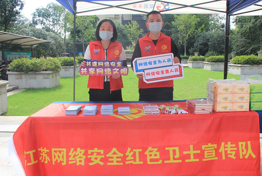 為進一步強化居民的網絡安全意識,使居民正確掌握和應對常見的網絡安全風險,預防和減少網絡詐騙帶來的經濟損失。9月16日下午,江蘇瑞新網絡安全紅色衛士宣傳隊聯合中國電信公司走進江蘇省鎮江市美的城一區社區,開展網絡安全宣傳“進社區活動。”